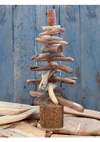 Hand crafted Cornish driftwood trees, made from randomly sourced pieces of driftwood found on local beaches and harbours in South West Cornwall. All my driftwood trees are unique and come in a variety of sizes and shapes but are generally no higher than 45cm and they all have a rustic, gentle naturistic feel. I like to use imaginitive objects for the tops of the trees and often use corks from Champagene, Prosecco or Gin bottles and I have my neighbours collecting them on my behalf for when they have a party, family get-together, or celebration! I am able to produce larger to trees to order but shipping costs will vary depending on size and shape. For further details please email me at: guy.dwelly@btinternet.com or call 07905 377416
