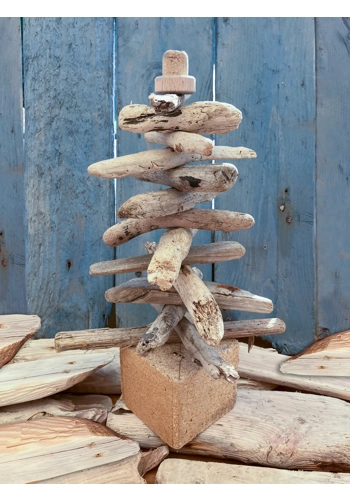 Hand crafted Cornish driftwood trees, made from randomly sourced pieces of driftwood found on local beaches and harbours in South West Cornwall. All my driftwood trees are unique and come in a variety of sizes and shapes but are generally no higher than 45cm and they all have a rustic, gentle naturistic feel. I like to use imaginitive objects for the tops of the trees and often use corks from Champagene, Prosecco or Gin bottles and I have my neighbours collecting them on my behalf for when they have a party, family get-together, or celebration! I am able to produce larger to trees to order but shipping costs will vary depending on size and shape. For further details please email me at: guy.dwelly@btinternet.com or call 07905 377416