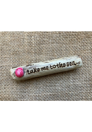 Small pieces of hand crafted Cornish driftwood, from locally sourced beaches and harbours in South West Cornwall with the inscription 'Take me to the sea'. The lettering has been pyrographed directly on to the wood at high temperature and then a coat of linseed oil or exterior varnish is applied. Some come with a small piece of macramé rope along the top along with small shells, toy boats or nautical devices.